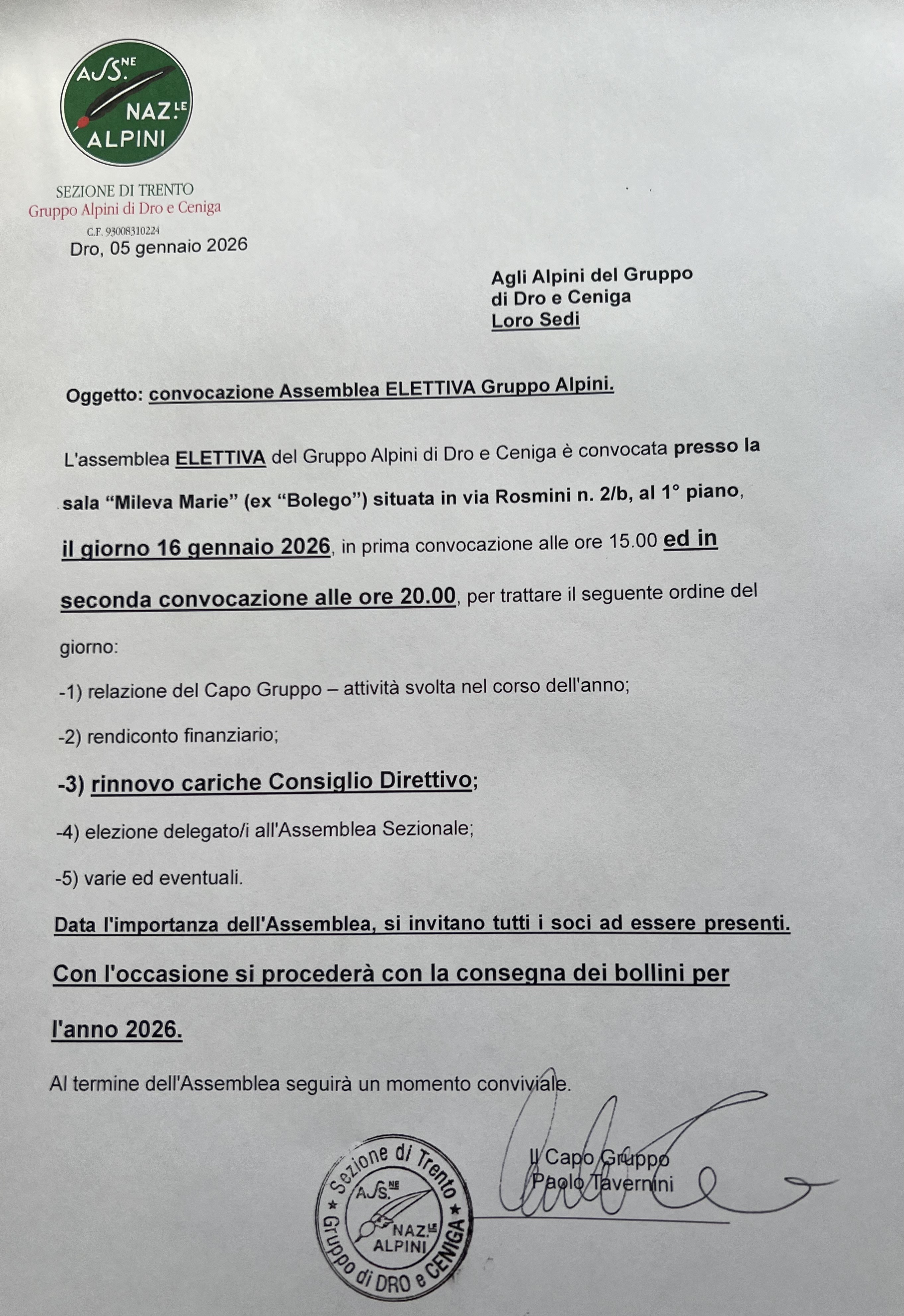 in allegato convocazione