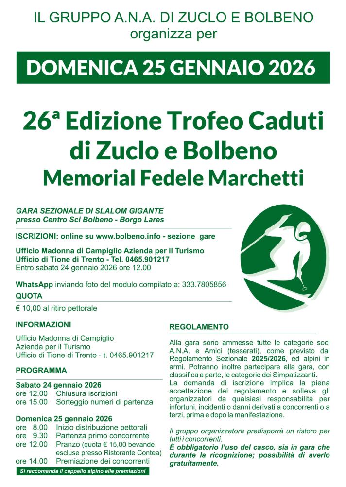 Il gruppo A.N.A. di Caldonazzo convoca l'assemblea ordinaria del gruppo alle ore 10.00 presso il cam...
