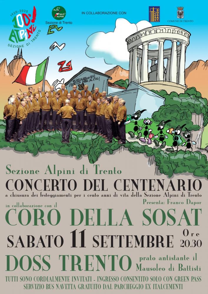 Sabato 11 settembre, ore 20.30, a chiusura delle celebrazioni per i cento anni della nostra Sezione, è stato organizzato il “Concerto del Centenario” sul Doss Trento, in collaborazione con il Coro della Sosat.
